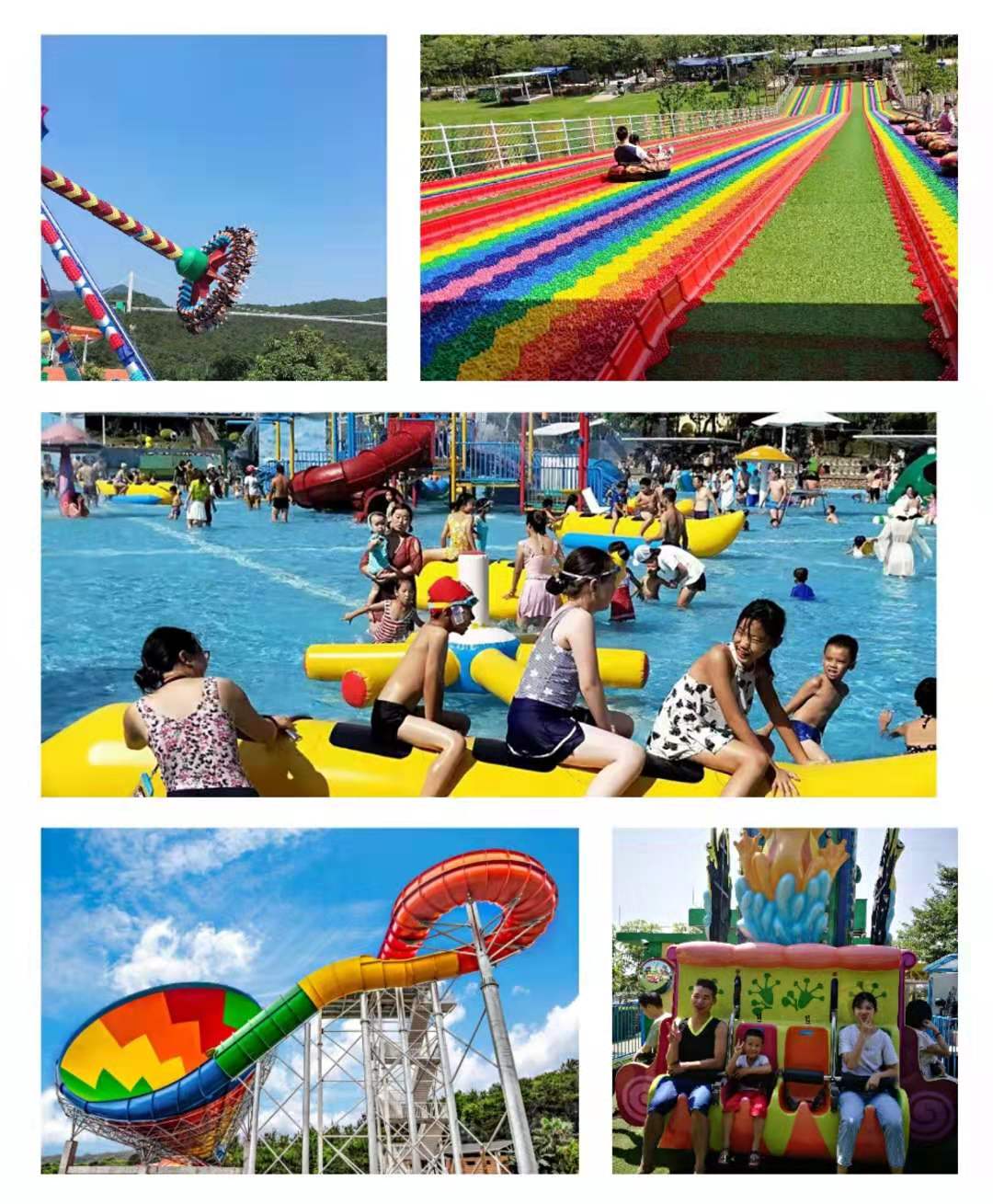 穿過玻璃橋,挑戰(zhàn)了云端極限之后,大家便迫不及待的投身到各色游戲當(dāng)中。膽大愛冒險的同事就沖著大擺錘、過山車、沖上云霄、超級秋千等刺激冒險的游戲,享受腎上腺素飆升的感覺,在這可以盡情吶喊尖叫把生活的煩惱通通拋掉;童心未泯的同事便更偏愛快樂摩天輪、碰碰車、旋轉(zhuǎn)木馬等休閑娛樂的經(jīng)典游戲,再享受一次童年最初的快樂;酷愛戲水的同事早就被大喇叭、大回環(huán)太空盤、垂直馬桶綁住了心,連續(xù)高低起伏帶來的失重沖擊感讓其體驗了一把水上的“速度與激情”。但是,無論你是誰,都逃不過抖音上火遍全國的彩虹滑道之誘惑,坐上小氣船,在五彩斑斕的滑道上順滑而下感覺就像是在彩虹里穿梭,陡峭的山坡帶來的沖刺感,浪漫而刺激......不管是尖叫島的刺激與挑戰(zhàn),還是水上樂園的速度與狂歡,都讓大家樂而忘返!