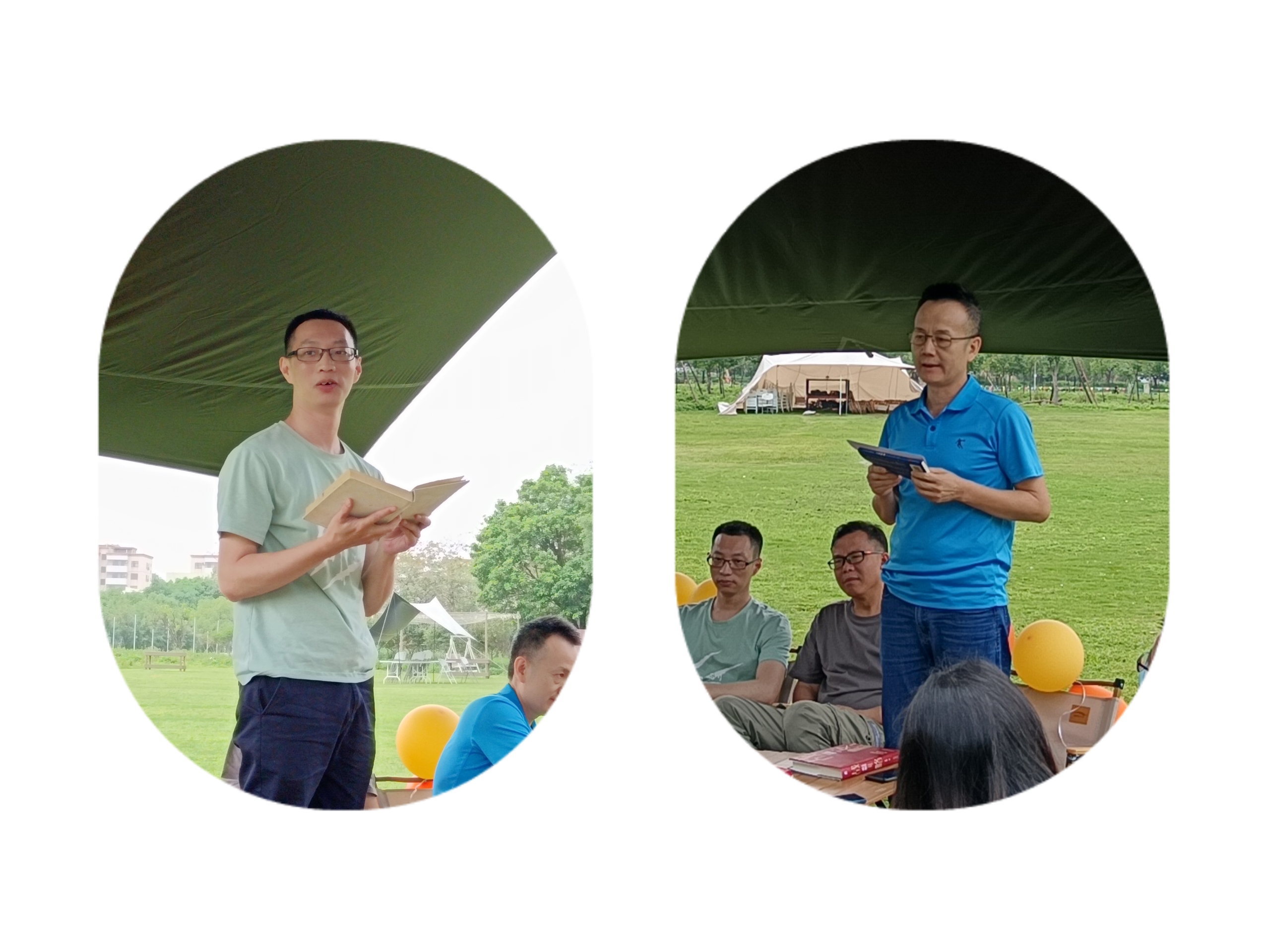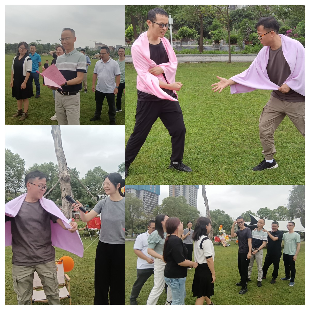 “烤”過三旬,稍作休息,來到我們的放松環(huán)節(jié):游戲時(shí)間。“武林爭(zhēng)霸”經(jīng)過一系列的決斗,胡大幫主身披“幫主披風(fēng)”登上寶座一統(tǒng)江湖,并接受全員拱手禮。緊接著“開口中”數(shù)字游戲緊鑼密鼓登場(chǎng),黃綠兩隊(duì)斗智斗勇,輸方以俊臉為畫布,讓贏家在上面“一筆作畫”,開戰(zhàn)三輪,最終個(gè)個(gè)笑靨生“花”。一時(shí)間歡聲笑語(yǔ)回蕩整個(gè)草地,點(diǎn)燃這鮮活的人生。即使時(shí)光匆匆,我們依舊在繁忙的工作中感受著相聚的美好,不僅收獲了快樂,也在交流中增進(jìn)了理解和溝通,以更加飽滿的精神投入到工作中。