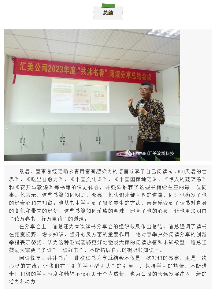 匯美舉行2023年度“閱讀悅享,共沐書香”讀書分享總結(jié)會議