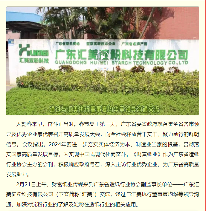 財富紙業(yè)傳媒專訪 | 匯美淀粉踐行高質(zhì)量發(fā)展道路