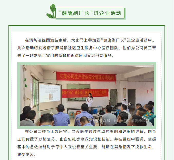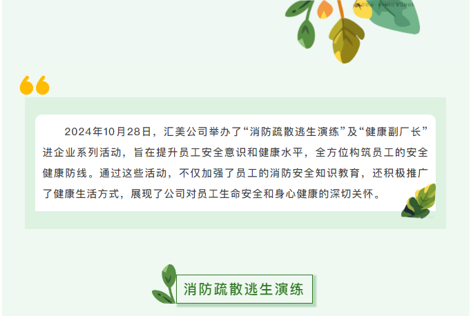 構(gòu)筑安全健康雙防線|匯美舉辦“消防疏散逃生演練”及“健康副廠長”進(jìn)企業(yè)系列活動