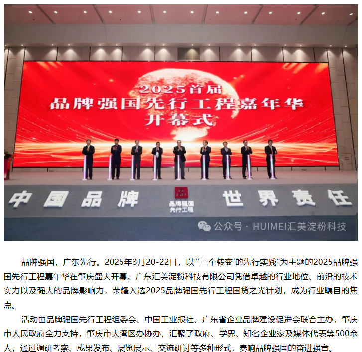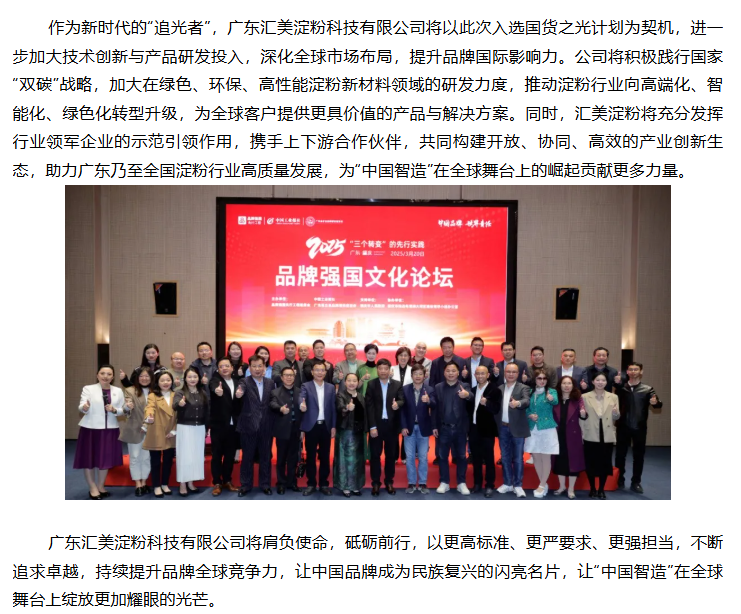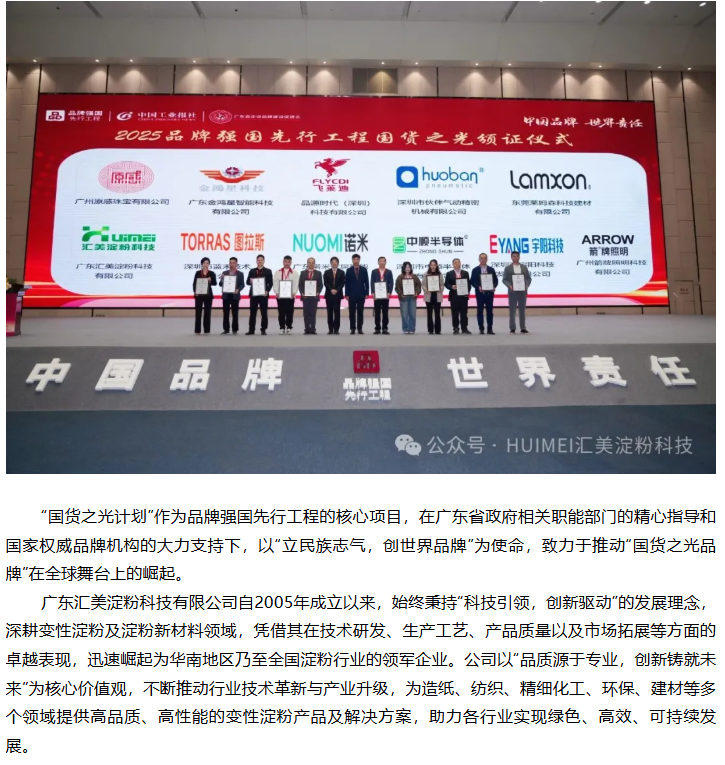 立民族志氣 創(chuàng)世界品牌 | 匯美淀粉科技入選2025品牌強國先行工程國貨之光計劃