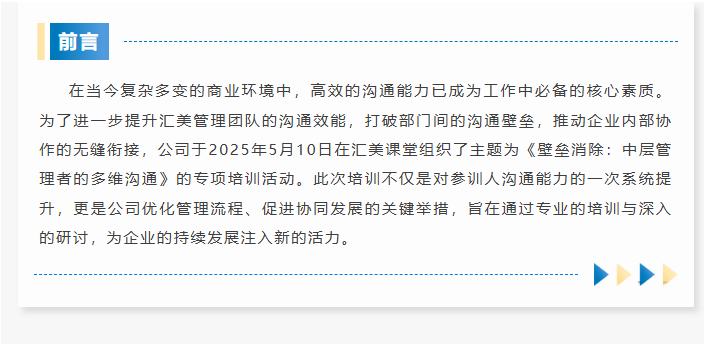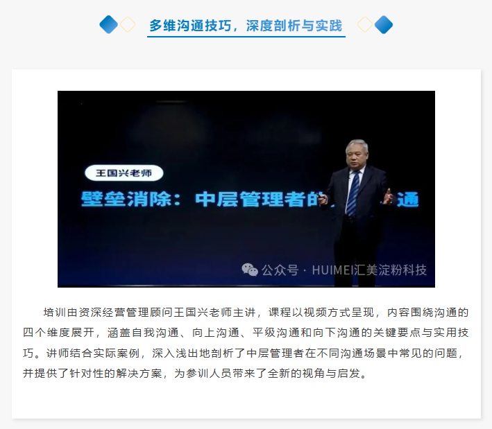 匯美組織開展《壁壘消除:中層管理者的多維溝通》專項(xiàng)培訓(xùn) HUIMEI匯美淀粉科技 2025年05月14日 17:06 廣東