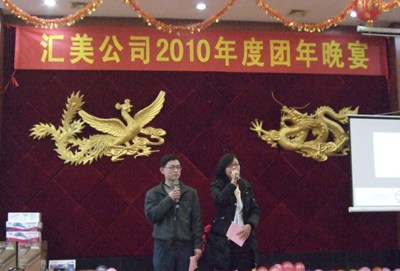 晚宴一開始,所有人一起欣賞匯美公司2010年的視頻特輯《走過(guò)2010》,回顧過(guò)去一年的點(diǎn)點(diǎn)滴滴;接著由公司領(lǐng)導(dǎo)夏總致新年賀辭。夏總在致辭中,肯定了大家在2010年取得的成績(jī),感謝過(guò)去一年大家為公司發(fā)展付出的努力,并指出尚存在的問(wèn)題,鼓勵(lì)大家繼續(xù)努力。