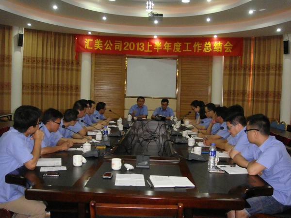 2013年7月19日14:30,匯美公司2013年年中工作總結會議在陽江市海陵島富海酒店15樓會議室舉行。會議由執(zhí)行董事夏均華主持,公司9個部門共18位中高層管理人員出席了本次會議。