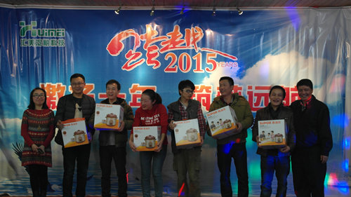 在隨后的慶?;顒由?,精彩紛呈、驚喜不斷,歌曲《鵲橋會》和《相親相愛一家人》勾勒了匯美大家庭相親相聚、團結(jié)友愛的和諧畫面;《我的好兄弟》演繹了匯美人相扶相攜、困難中迎難而上的兄弟情深;詩朗誦《2015,我希望》道出了匯美人追求和諧、珍視友愛的美好愿望;舞蹈《小蘋果》則跳出了匯美人活力四射的自信以及相聚時的開心與快樂。團年活動中,穿插的幸運大抽獎(六等獎、五等獎、四等獎、三等獎、二等獎、一等獎、嘉賓獎、特等獎、神秘大獎等等),更是多次將現(xiàn)場氣氛掀至最高點。