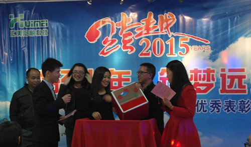 在年度優(yōu)秀表彰大會上,公司對2014年的先進個人——“優(yōu)秀員工”、“優(yōu)秀技術(shù)員”、“優(yōu)秀管理員、優(yōu)秀班組長” 、“最佳進步獎”、“最具創(chuàng)新獎”以及“最具奉獻獎”等進行了隆重表彰,并以資鼓勵。此外,在頒獎晚會上公司領(lǐng)導還特別感謝了一直為匯美公司財務(wù)工作提出寶貴意見和建議的財務(wù)顧問黃煥祥先生,并贈予“博學多聞、德藝雙馨”稱號,同時也借此表達匯美公司對一直關(guān)注和支持匯美發(fā)展的各界朋友的衷心感謝。