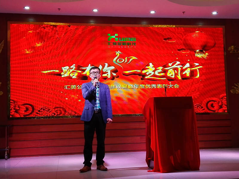 晚會(huì)伊始,公司全體人員和應(yīng)邀來賓共同欣賞了回顧2016年精彩歷程的短片——《一路有你,一起前行》。之后,由執(zhí)行董事夏均華先生代表公司董事會(huì)做新年致辭。 夏均華先生指出2016年是匯美第二個(gè)“10年發(fā)展”的首年,這一年,匯美開局良好,工匠精神、創(chuàng)新思維刷新著企業(yè)風(fēng)貌,研發(fā)中心攻堅(jiān)克難,開發(fā)、完善多個(gè)新產(chǎn)品;出口業(yè)務(wù)、新行業(yè)市場的應(yīng)用也不斷取得新的突破。同時(shí)提出“品牌匯美,創(chuàng)新匯美”是匯美第二個(gè)“10年發(fā)展”的主旋律,2017年在總結(jié)第一個(gè)“10年發(fā)展”歷程的基礎(chǔ)上,我們要進(jìn)一步增強(qiáng)質(zhì)量意識(shí)、創(chuàng)新意識(shí)、服務(wù)意識(shí)、團(tuán)隊(duì)意識(shí),為匯美第二個(gè)“10年發(fā)展”打下堅(jiān)實(shí)基礎(chǔ)。