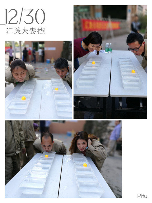 午后的陽光暖暖的籠罩著匯美廠區(qū),使得前來參加游園活動的匯美員工們沉浸在一片喜慶祥樂的氛圍之中。隨著鐘表的時針指向3點,匯美“迎新春、慶元旦”游園活動便在員工的喜悅和興奮中粉墨登場!“拋圈”是每年游園活動中最受歡迎的節(jié)目。活動一開始,員工們就排起了長龍,拋圈者瞄準(zhǔn)目標(biāo),輕投或猛擲,隨著幸運的圈圈拋出去,一陣陣歡樂的高呼便隨之而來。“吹乒乓”,將乓乓球放在裝滿水的盒子里,掌握吹氣技巧,將調(diào)皮的乒乓球從這一端吹到另一端,夫妻檔、親子對、兄弟連躍躍欲試又互不相讓,黃色的小球落入水中或跳出臺面,在水花飛濺中歡笑四溢;滾鐵環(huán),吸引了眾多老員工們前來參與,快樂奔跑的身影、開心愉悅的說笑、清脆悅耳的鐵環(huán)滾動聲勾起了匯美人一段段童年的回憶;今年游園活動新增項目——無敵風(fēng)火輪,四人一組在自制的報紙履帶環(huán)中合作前行,更是彰顯了匯美人在團結(jié)合作中體驗的開心和快樂。擲飛鏢,不論力氣和技巧,四鏢連發(fā),開心快樂就是終極目標(biāo)......總之,游園節(jié)目精彩紛呈、獎品豐富多彩,參賽的匯美員工們更是開心無比,笑聲不斷。