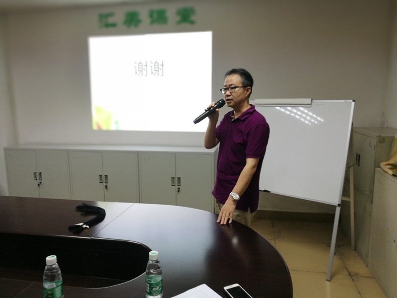 圖1、匯美市場部銷售工程師周超主講《牛仔經(jīng)紗上漿基礎(chǔ)知識》