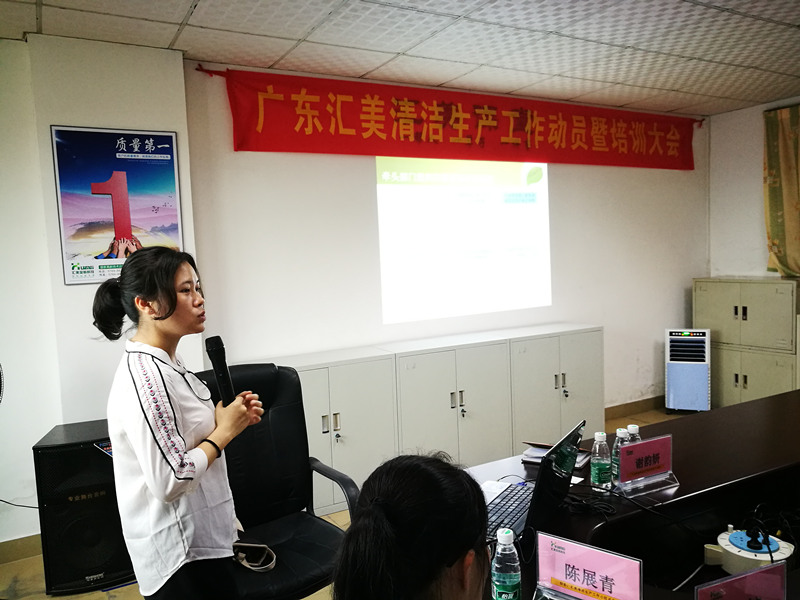 隨后,粵盛清潔生產(chǎn)技術(shù)創(chuàng)新中心謝韻妍部長(zhǎng)就《清潔生產(chǎn)基礎(chǔ)知識(shí)》做專題培訓(xùn),謝部長(zhǎng)從“清潔生產(chǎn)”定義入手,對(duì)清潔生產(chǎn)的發(fā)展、審核來(lái)源等情況作了闡述,并詳盡介紹了清潔生產(chǎn)審核程序的七個(gè)階段,她指出:清潔生產(chǎn)不是清潔衛(wèi)生,是促進(jìn)資源利用與環(huán)境保護(hù)相協(xié)調(diào)的一種生產(chǎn)模式,將“污染預(yù)防”的環(huán)境思維應(yīng)用于生產(chǎn)和服務(wù)的全過(guò)程。清潔生產(chǎn)基礎(chǔ)知識(shí)專題培訓(xùn),使參會(huì)人員對(duì)清潔生產(chǎn)有了全面系統(tǒng)的認(rèn)識(shí),不僅提高了匯美全員“節(jié)能、降耗、減污、增效”清潔生產(chǎn)意識(shí),也確保了匯美清潔生產(chǎn)工作的順利開展。