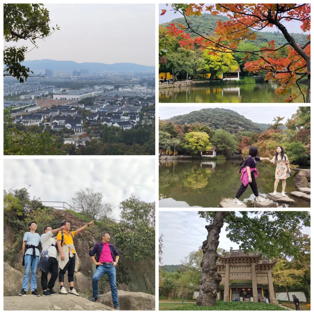 登天平山頂,放眼遠眺,延綿群山、浩瀚太湖,繪制成一幅充滿時代氣息的江南山水畫卷,瑰麗壯觀、生機勃勃。入山門處有“高義園”牌坊、御碑亭、范文正公忠烈廟、“先憂后樂坊”等諸勝,讓我們深刻感受了先賢范仲淹“先天下之憂而憂、后天下之樂而樂”憂國憂民的愛國主義情懷。