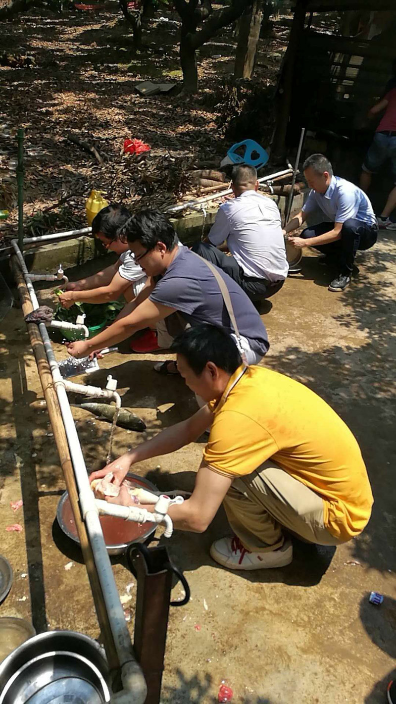 中午時分,大家匯集在牙山果園燒烤場,親自動手烹飪美食,并選定兩道菜肴進行廚藝大比拼。這時大家自由搭配分為三個組合,分工合作,各顯身手,有的生火,有的切菜,整個野炊現(xiàn)場忙而不亂,歡聲不斷。第一組由先進黨員黃經(jīng)理點燃了“命革的火種”,生火姿勢更像在健身,大家都佩服不已。另一組周大廚掌勺大顯身手,加上組員的積極配合,快速得做出一桌豐富誘人的美食。其中肉末紅燒茄子,土豆燜雞香氣撲鼻,頓時吸引了不少的同事爭相品嘗。其他組也不甘示弱,王隊長把魚片切得整齊化一,這刀工讓人看了都為之贊嘆!小湯做到啤酒雞則別出心裁,香飄四溢。經(jīng)過六位評委打分,最終周大廚成功上位獲得此次廚藝大賽的第一名,果然是實至名歸。