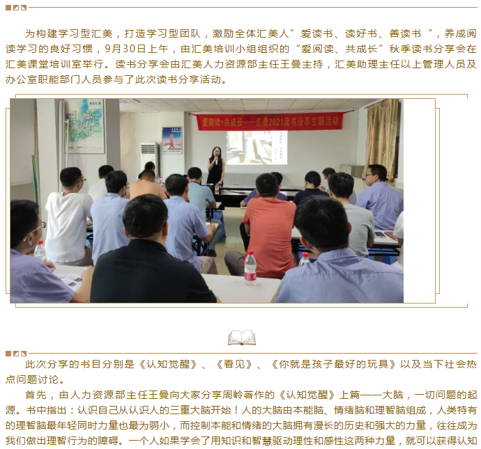 愛閱讀|共成長——匯美2021秋季讀書分享會